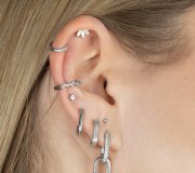hey! Celestial conch hoop - pozłacany kolczyk kółeczko z cyrkoniami, dedykowany do przekłucia conch. Posiada rząd nieregularnych, niezwykle błyszczących kryształków cyrkonii - bo blasku nigdy za wiele. To pojedyncze pasujące do płatka ucha lub muszli, zaprojektowane z myślą o wygodzie i łatwości użytkowania. Kobiecy i subtelny.
