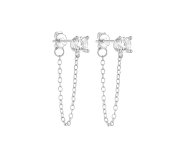 Crystal dot chain - srebrny kolczyk sztyft z łańcuszkiem