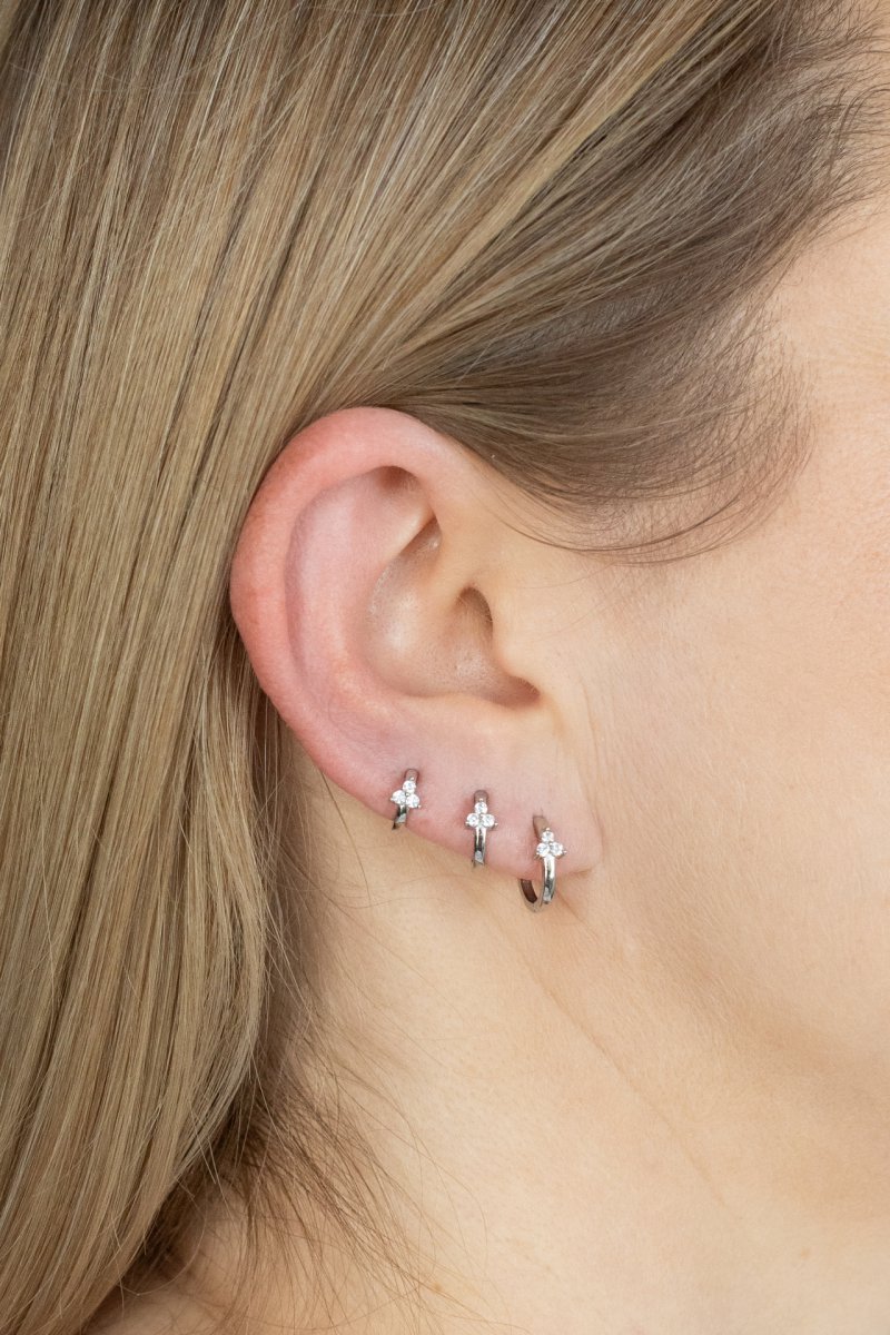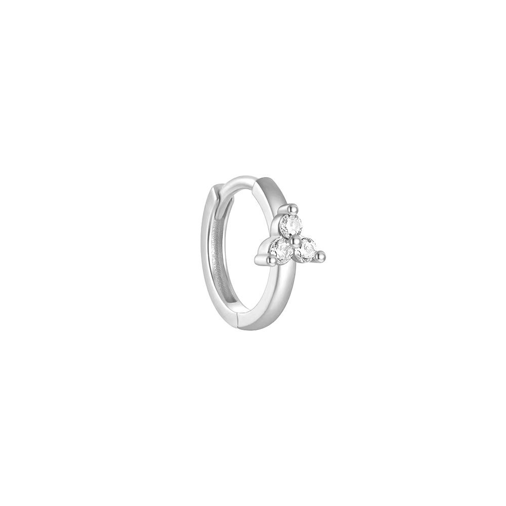 hey! Flora huggie M - srebrny kolczyk kółeczko z potrójnymi cyrkoniami. Minimalistyczny a zarazem uroczy, dla dziewczyn lubiących niecodzienny i wyrafinowany styl. Idealne na prezent.