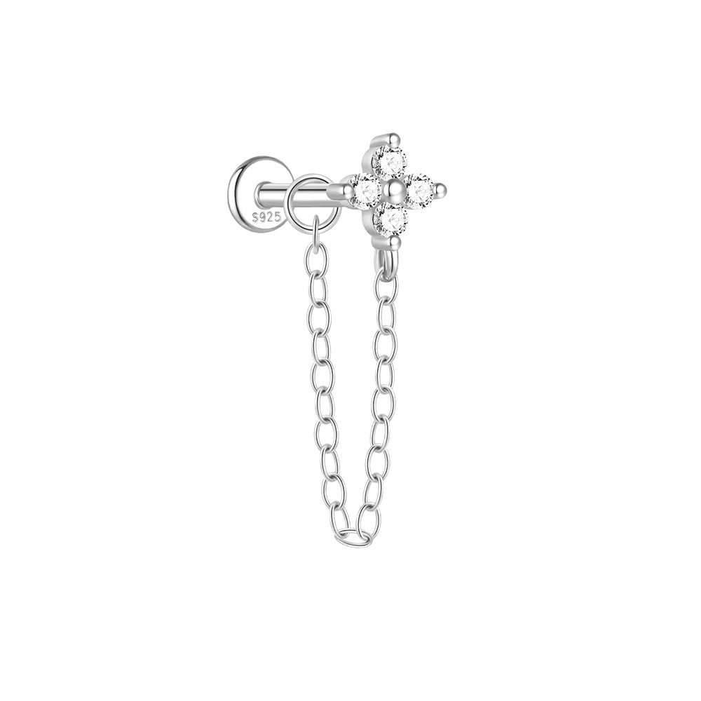 hey! Flower and Chain labret - srebrny kolczyk labret z kwiatem i delikatnym łańcuszkiem, który subtelnie opada przy uchu. Minimalistyczny, ale z efektem wow – idealny, by dodać stylizacji lekkości i nowoczesnego charakteru.