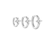 hey! Flower huggie S - srebrny kolczyk kółeczko z potrójnymi cyrkoniami. Minimalistyczny a zarazem uroczy, dla dziewczyn lubiących niecodzienny i wyrafinowany styl. Idealne na prezent.