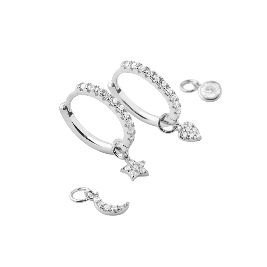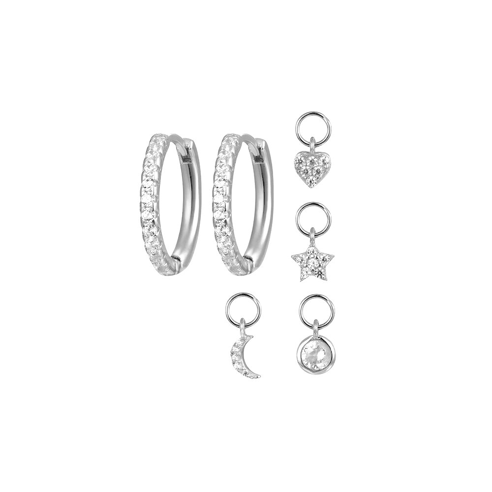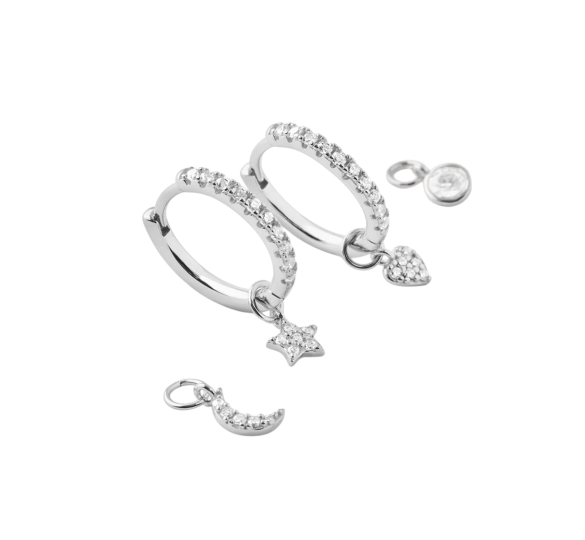 hey! Hoops with charms - srebrne kolczyki z zawieszkami. Stwórz swój własny, niepowtarzalny styl tymi pięknymi kolczykami! Kolczyki, do których możesz dobrać własne zawieszki, spośród 4 różnych zawieszek, dzięki czemu możesz je dowolnie mieszać i dopasowywać. Daj się ponieść kreatywności i stwórz osobisty akcent