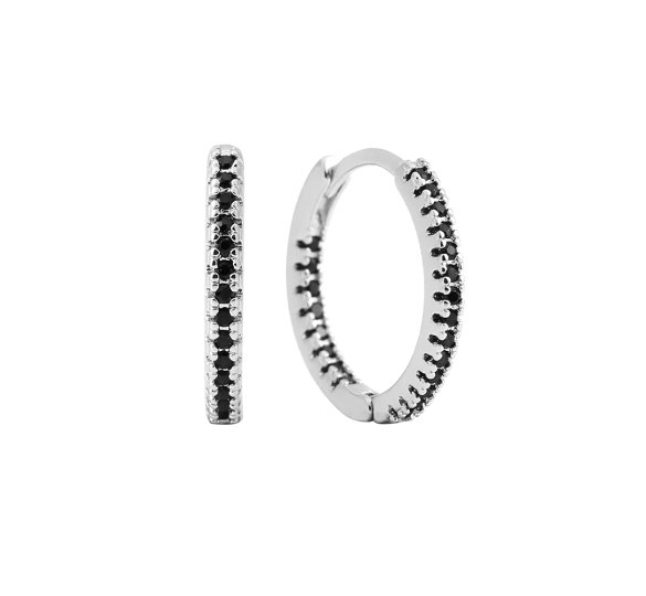 Infinity hoop black - srebrne kolczyki kółka z czarnymi cyrkoniami