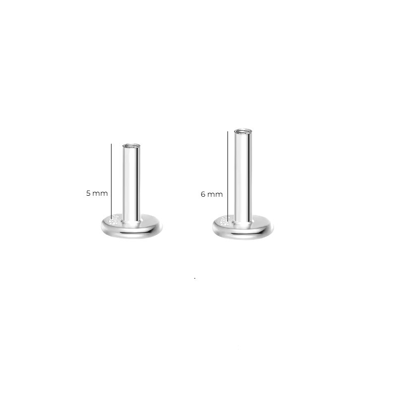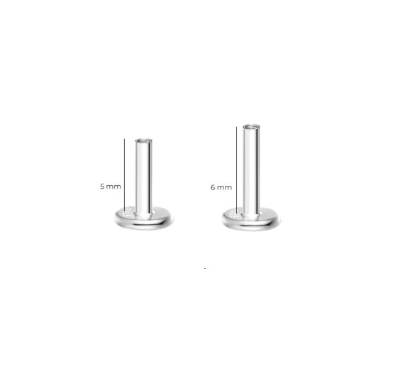 hey! Labret 5 mm - srebrna płaska stopka typu labret o długości 5 mm pasuje do naszych labretów z tym samym gwintem — możesz swobodnie wymieniać ozdobne zakrętki i dopasowywać długość stopki do konkretnego przekłucia.
