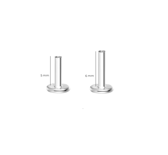 hey! Labret 6 mm - srebrna płaska stopka typu labret o długości 6 mm pasuje do naszych labretów z tym samym gwintem — możesz swobodnie wymieniać ozdobne zakrętki i dopasowywać długość stopki do konkretnego przekłucia.