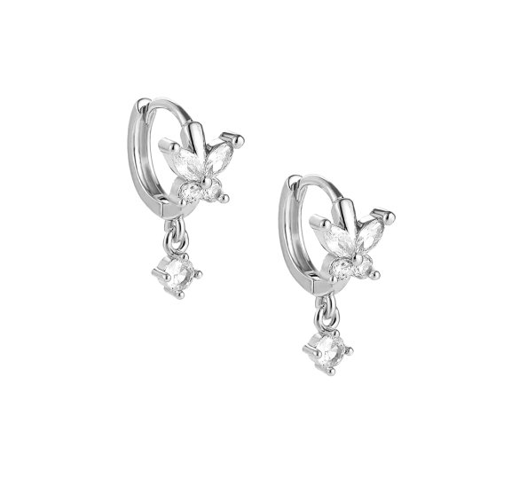 hey! Magic butterfly ver.B – srebrny kolczyk kółko z cyrkoniowym motylem i okrągłą cyrkoniową zawieszką. Łączy w sobie prostotę z dbałością o szczegóły, tworząc estetycznie doskonałe połączenie. Ten wyjątkowy model Idealny jest do codziennego noszenia jak również będzie idealną formą prezentu na każdą okazję.
