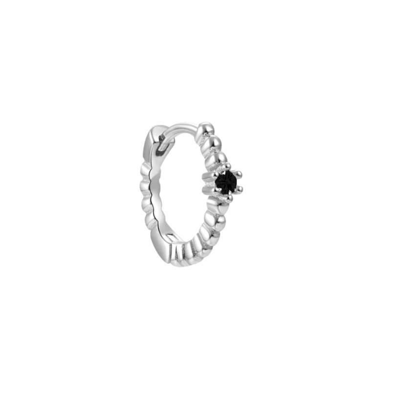 hey! Petite black huggie - srebrny, subtelny bąbelkowy kolczyk z czarną cyrkonią