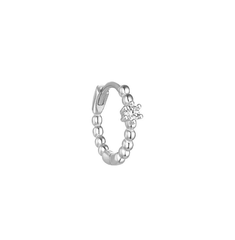 Petite white huggie - delikatny bąbelkowy kolczyk z białą cyrkonią