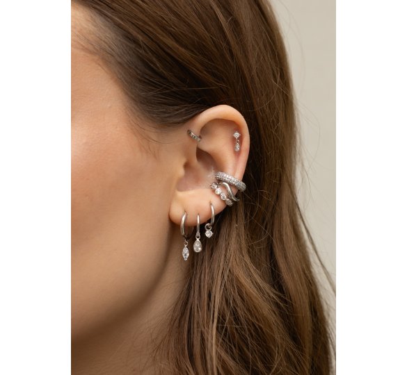 Water drop huggies - srebrne kolczyki kółka z zawieszkami