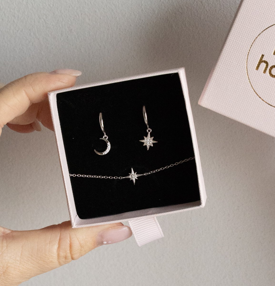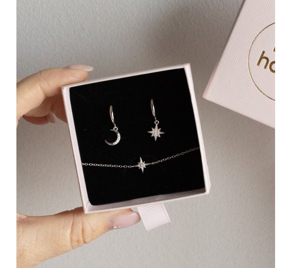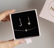 Zestaw Alexis black - pozłacany zestaw, kolczyki i bransoletka to idealne połączenie na prezent – piękne, uniwersalne i wyjątkowe. Subtelne detale sprawiają, że zestaw pasuje zarówno do codziennych stylizacji, jak i tych na specjalne okazje. Zapakowane w eleganckie pudełko, gotowe do wręczenia.