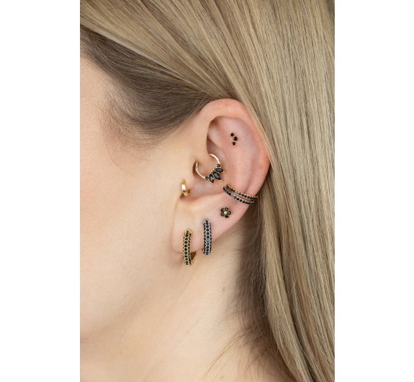 hey! Black Flower piercing - pozłacany kolczyk piercingowy, niezwykle subtelny a zarazem elegancki. Idealny do przekłuć w chrząstce typu; helix, mid helix, flat, tragus. Zakręcany kuleczką - gwint tylny.