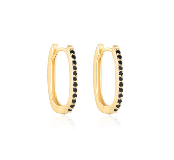 hey! Black oval  hoop – minimalistyczne, prostokątne kolczyki z czarnymi cyrkoniami