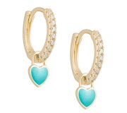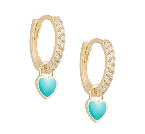 hey! Candy heart – kolczyk kółko z cyrkoniami oraz emaliowaną zawieszką o kształcie serca w kolorze turkusowym. Idealna kolekcja dla kobiet, które kochają lato i kolorowe dodatki. Noszony samodzielnie lub w zestawieniu z innymi kolczykami z naszych kolekcji, doda lekkości każdej stylizacji.