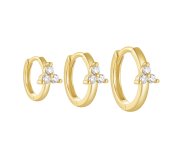 hey! Flora huggie S - pozłacany kolczyk kółeczko z potrójnymi cyrkoniami. Minimalistyczny a zarazem uroczy, dla dziewczyn lubiących niecodzienny i wyrafinowany styl. Idealne na prezent.