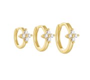 hey! Flower huggie L - pozłacany kolczyk kółeczko z potrójnymi cyrkoniami. Minimalistyczny a zarazem uroczy, dla dziewczyn lubiących niecodzienny i wyrafinowany styl. Idealne na prezent.