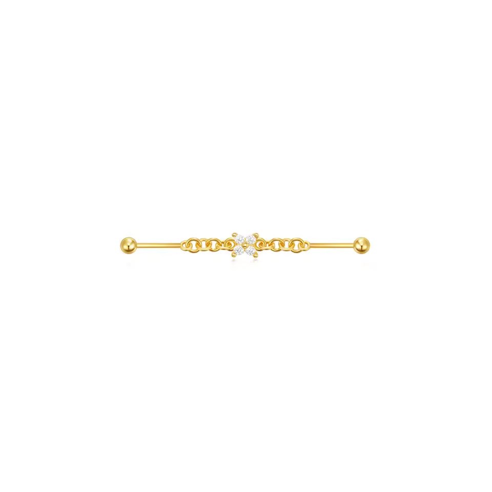 hey! Flower industrial piercing - pozłacany piercingowy kolczyk do przekłucia industrial. Delikatny motyw kwiatowy nadaje mu delikatności a łańcuszek lekkości i subtelności.