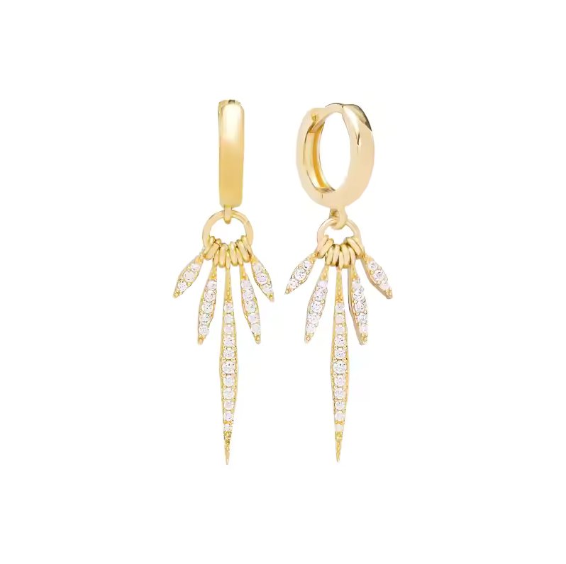 hey! Indiana earrings - pozłacane kolczyki kółeczka z zawieszkami. Nieregularne zawieszki z czarnymi cyrkoniami dodają uroku i magii. Idealne na letnie festiwale.