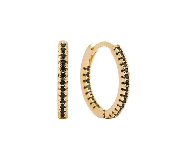Infinity hoop black - pozłacane kolczyki kółka z czarnymi cyrkoniami