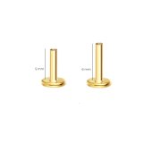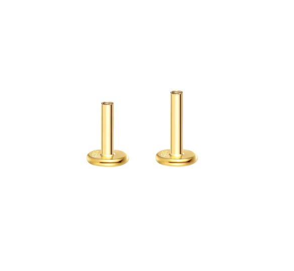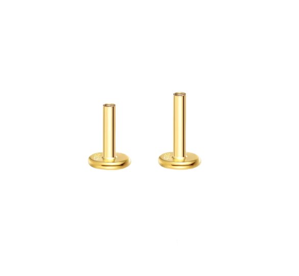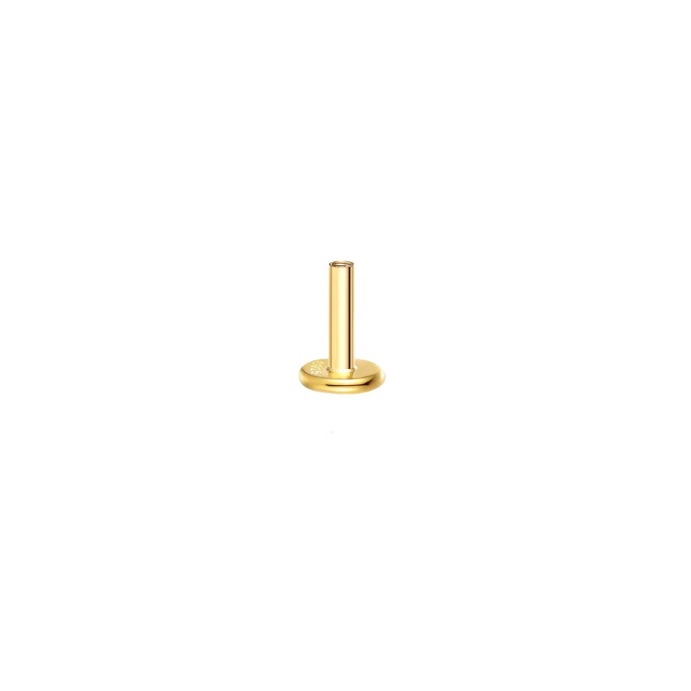 hey! Labret 5 mm - pozłacana płaska stopka typu labret o długości 5 mm pasuje do naszych labretów z tym samym gwintem — możesz swobodnie wymieniać ozdobne zakrętki i dopasowywać długość stopki do konkretnego przekłucia.