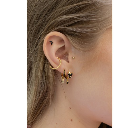 hey! Magic black butterfly – pozłacany kolczyk kółko z cyrkoniowym motylem i okrągłą cyrkoniową zawieszką. Łączy w sobie prostotę z dbałością o szczegóły, tworząc estetycznie doskonałe połączenie. Ten wyjątkowy model Idealny jest do codziennego noszenia jak również będzie idealną formą prezentu na każdą okazję.