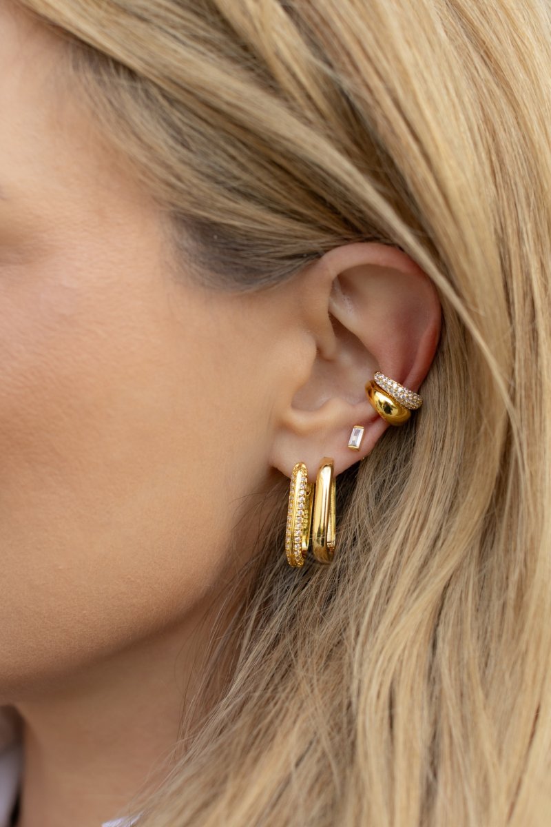 Kolczykami z zawieszkami: Jeśli nosisz kolczyki z zawieszkami, nausznica Bergen zbalansuje stylizację, dodając jej luksusowego, minimalistycznego sznytu.
