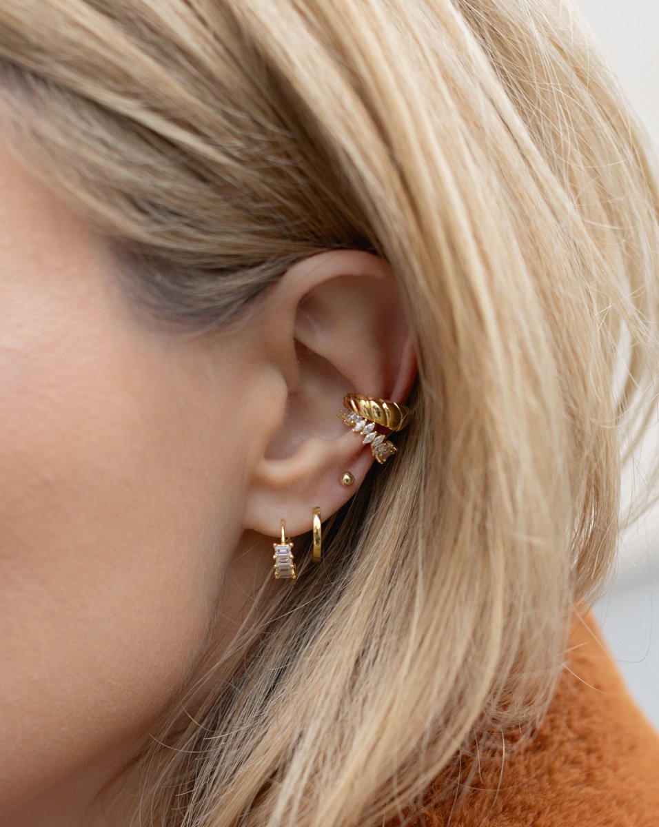 hey! Nausznica Malaga - pozłacana, fakturowana nausznica. Dodatek, który dodaje wyjątkowego charakteru. Nausznice nosimy solo, a w połączeniu z innymi kolczykami stworzymy modny i niepowtarzalny look.