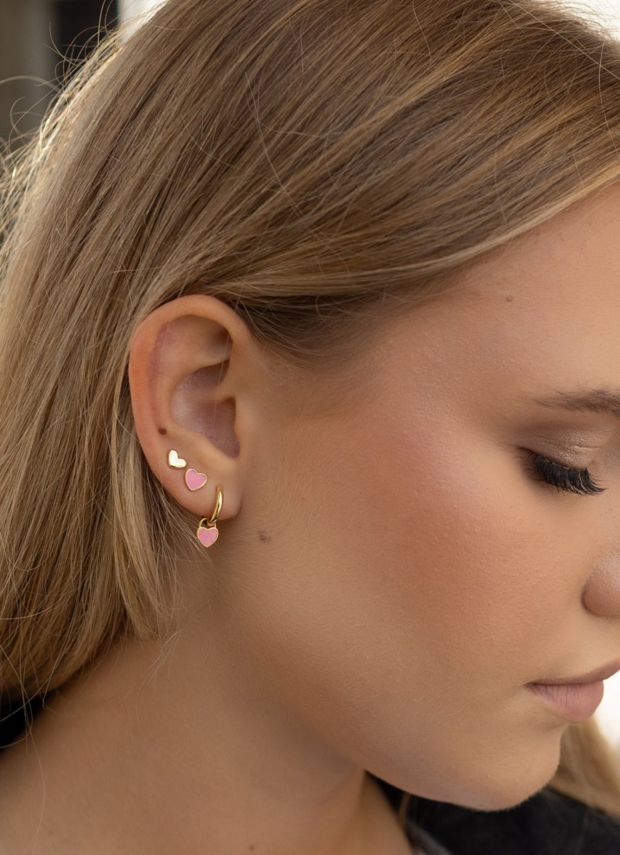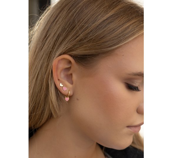 hey! Simple pink heart - pozłacany kolczyk, emaliowane różowe serce. Klasyczny minimalistyczny dostępny na sztuki, idealny jako dopełnienie stylizacji.