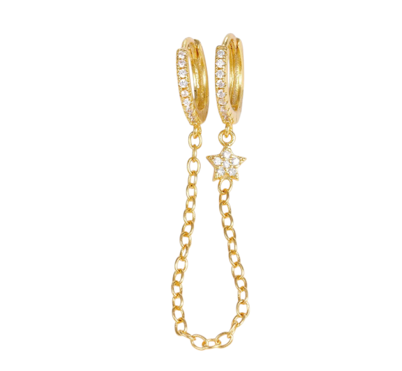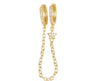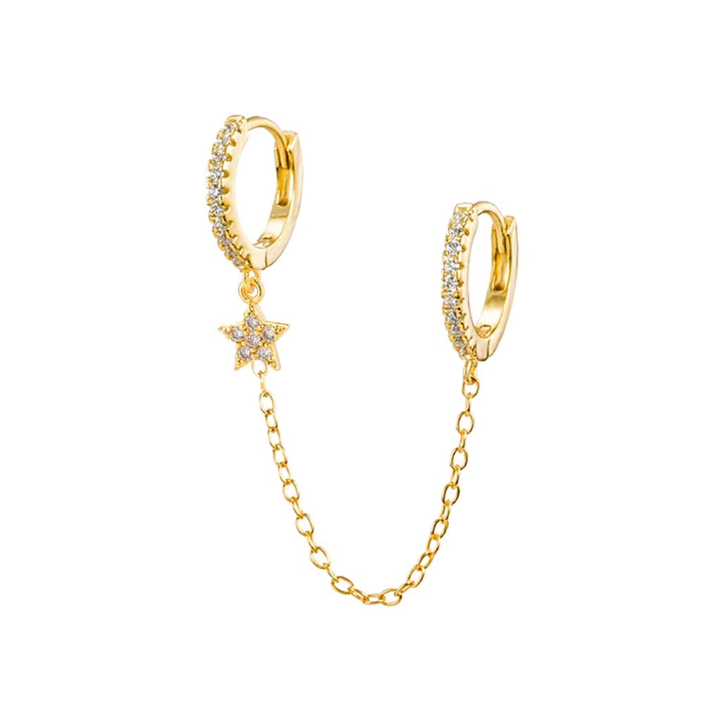 hey! Twinkle star - pozłacany kolczyk, dwa kołeczka z cyrkoniami połączone łańcuszkiem i z zawieszką gwiazdka. Niezwykle subtelny, uroczy i doskonały aby dodać go do swojej kolekcji kolczyków.