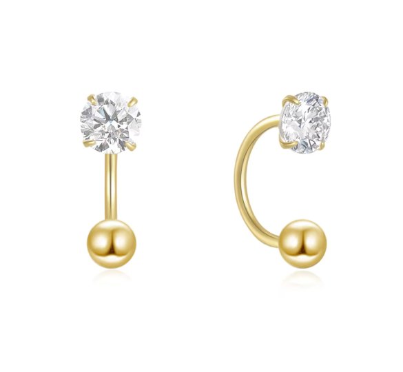 hey! Upside down earring - pozłacany kolczyk, zakręcany kuleczką. Niezwykły dodatek do kolekcji Twoich kolczyków. Dodają odrobinę stylu i elegancji a ich budowa sprawia, że jednym ruchem zmienisz stylizację odwracając go góra/dół.
