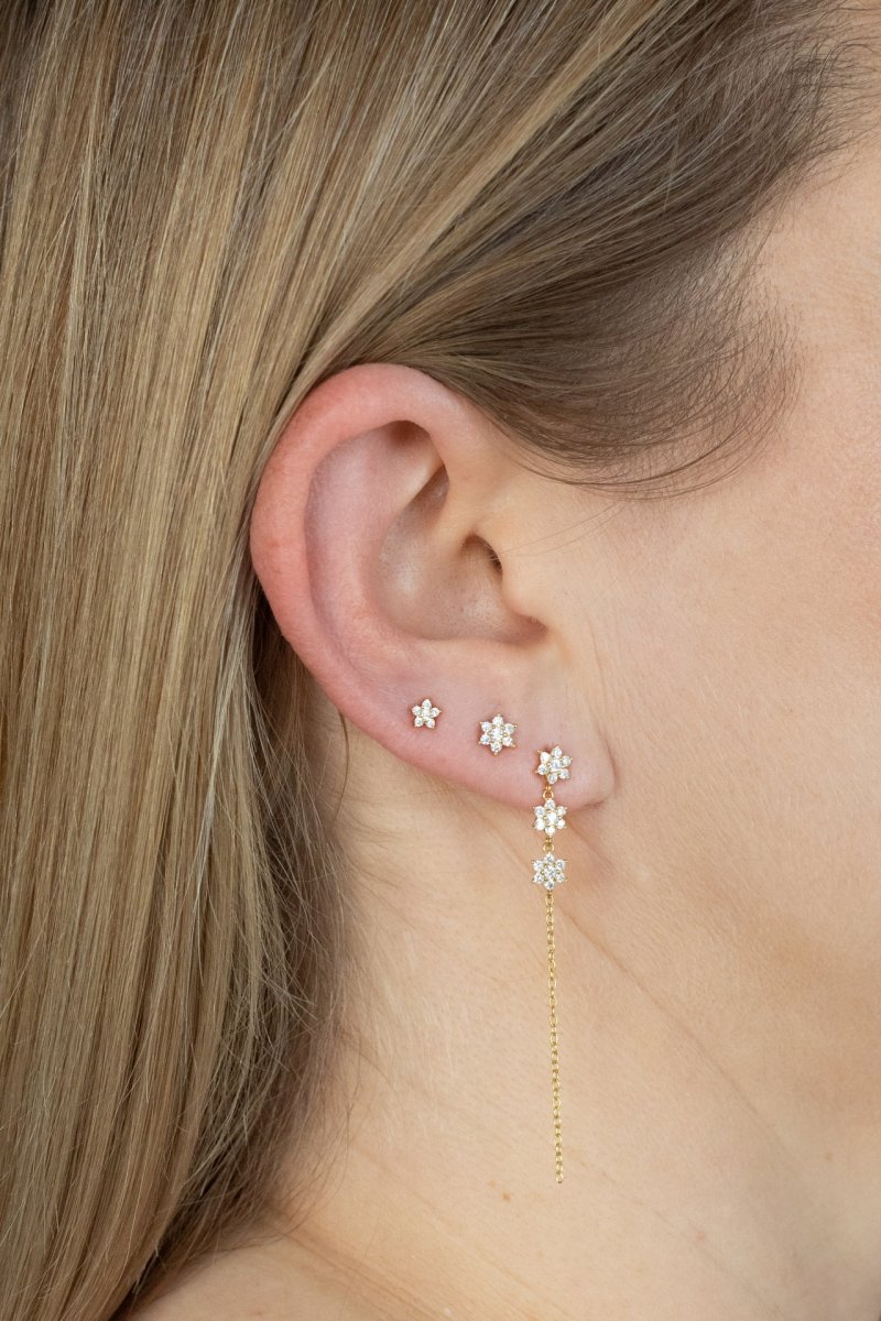 hey! Zestaw Lucy - to komplet trzech pozłacanych kolczyków sztyftów inspirowanych kwiatowym motywem. Dwa z nich to delikatne kwiatki w różnych rozmiarach, a trzeci – kwiaty połączone subtelnym łańcuszkiem. Lekki, kobiecy zestaw, który doda uroku każdej stylizacji ucha. Zapakowane w eleganckie pudełko, gotowe do wręczenia.